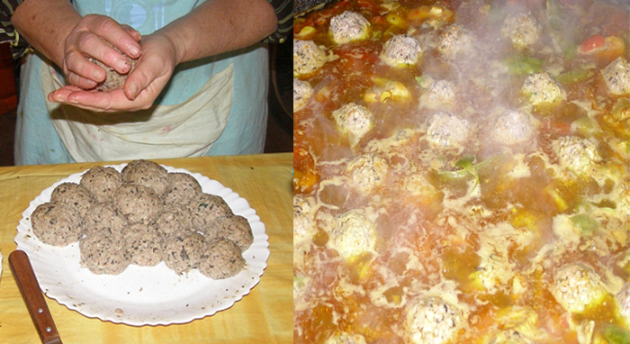 Després de ben pastat, es fan les pilotes d’una mida que estiga bé i, abans de posar-les a l’arròs, les passem per les clares.