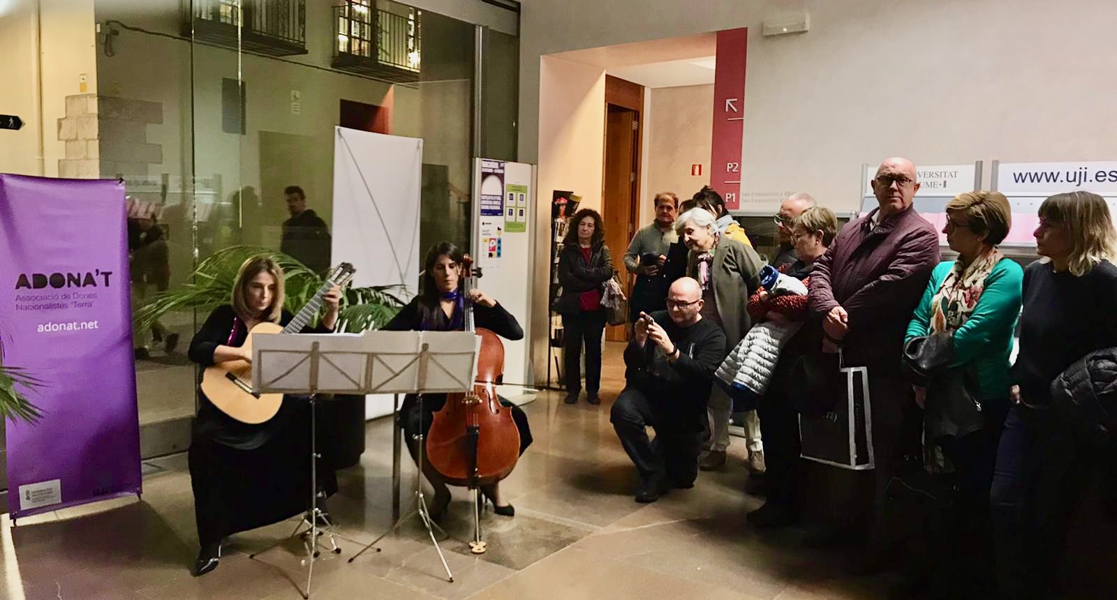 La presentació va tenir lloc a la Llotja del Cànem de Castelló on vam poder sentir les amables paraules que Cristina Pauner ens va dedicar en representació de la Universitat Jaume I, la intervenció de la presidenta d’ADONA’T en un to clarament reivindicatiu i les reflexions d’Inma Esplugues, Natalia Bort i Mari Creu Marín al voltant de les dones en la música clàssica. Per a finalitzar vam gaudir de la música en directe del “Duo a deu cordes”, amb Elena Alarcón al violoncel i Ana María Archilés a la guitarra clàssica amb peces composades per Elaine Fine i Claudia Montero.