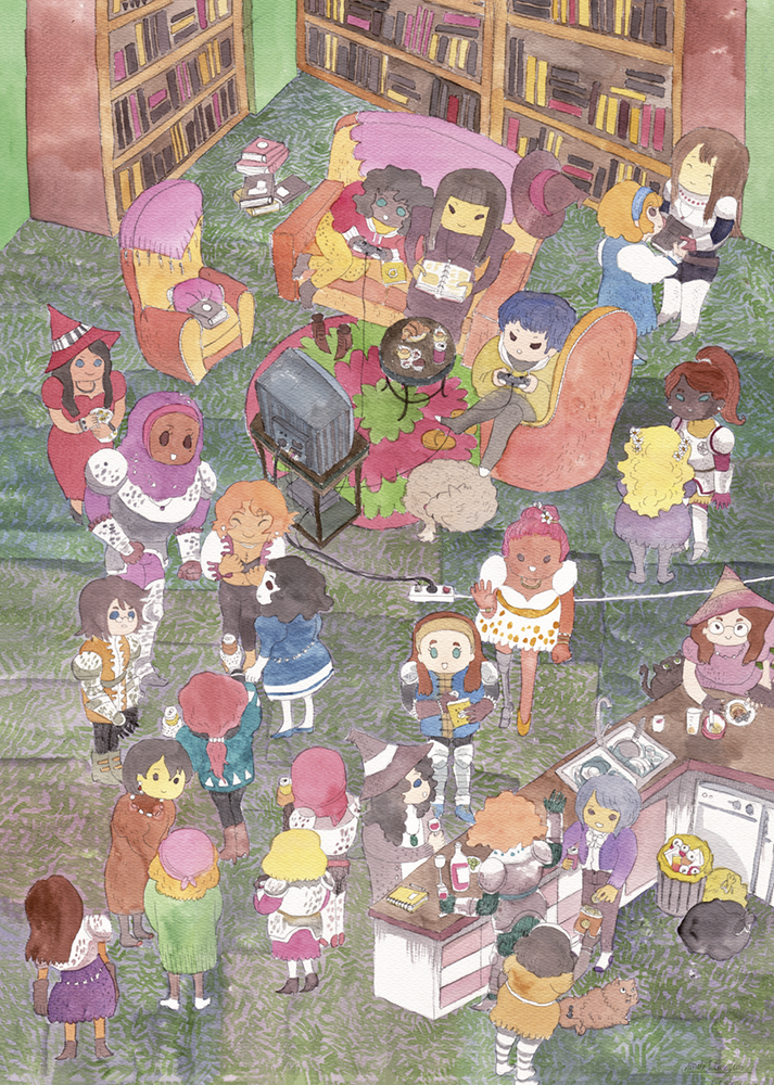 Quan vaig llegir el fragment de text que havia d’il·lustrar em vaig quedar en blanc. La dona d’aquesta història d’hòmens no té res: ni permís per expressar-se, ni dret a pensar, i tampoc té casa. Avui en dia, encara hi ha dones que no disposen d’un lloc on sentir-se segures, un espai propi on poder parlar de qualsevol cosa i canviar de tema una i mil voltes, on deixar els plats bruts i netejar-los l’endemà. No són ames de sopar a l’hora que els ve de gust ni de descansar fins el migdia si els cal. I jo volia fer aquesta casa nostra on poder dormir tranquil·les sense patir malsons.